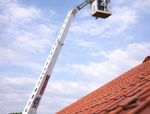 Effiziente und sichere Arbeiten in großer Höhe mit Autokran und Raupenarbeitsbühne. Scheiwe Bedachungen bietet moderne Technik für Dach- und Fassadenprojekte in Warendorf, Münster und Telgte.